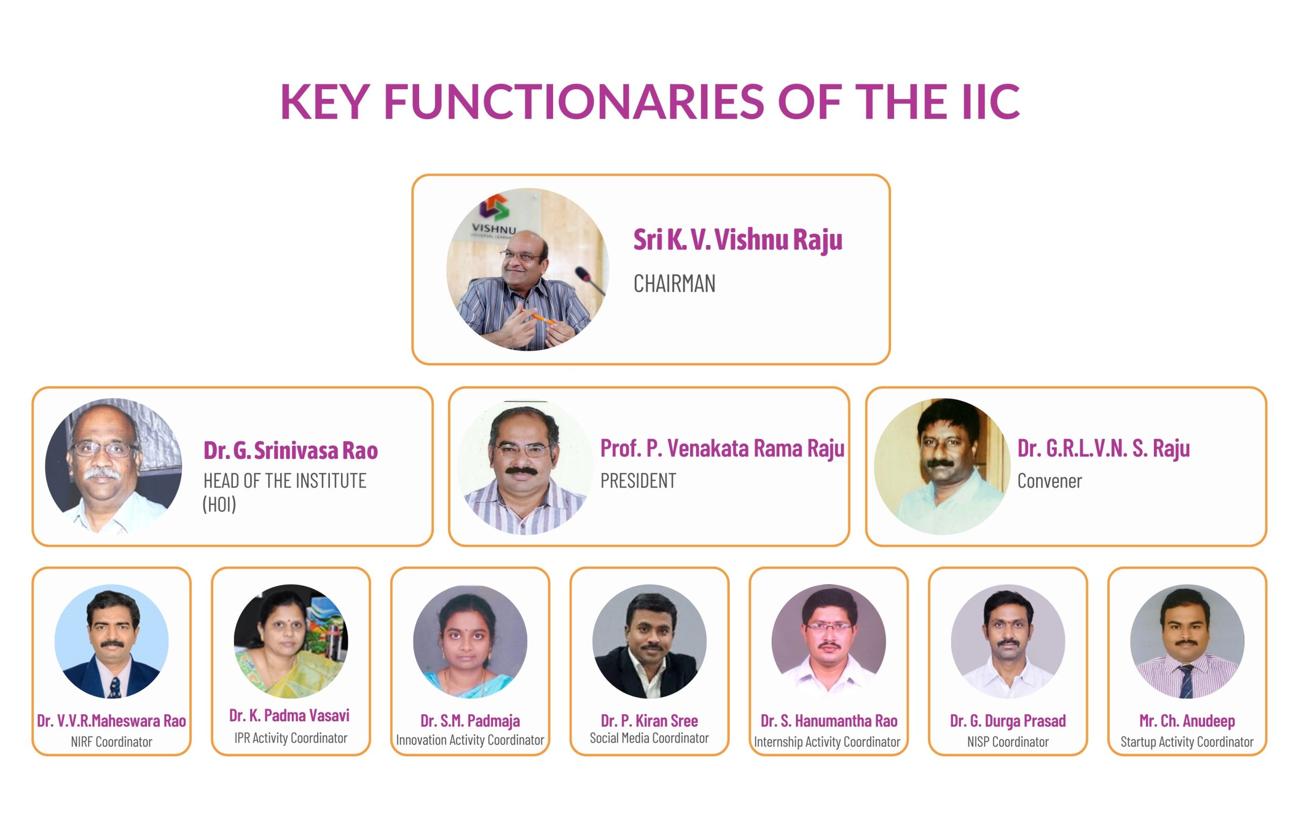 As per the Institutions Innovation Council, Ministry of Education guidelines the institute has formulated the IIC council. The IIC council is comprised up with the following members.